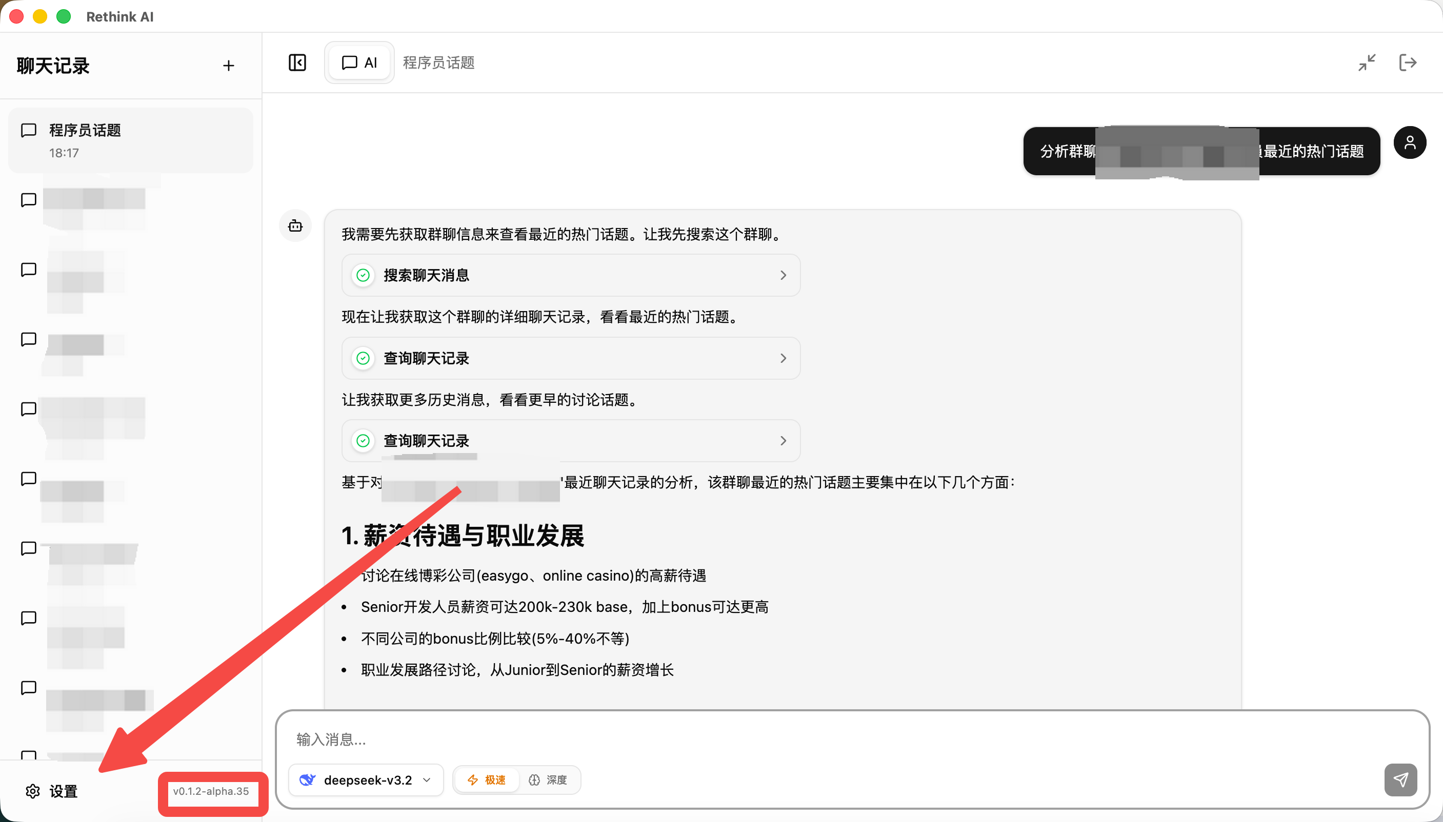 - AI 将自动调用工具查询和分析您的聊天数据