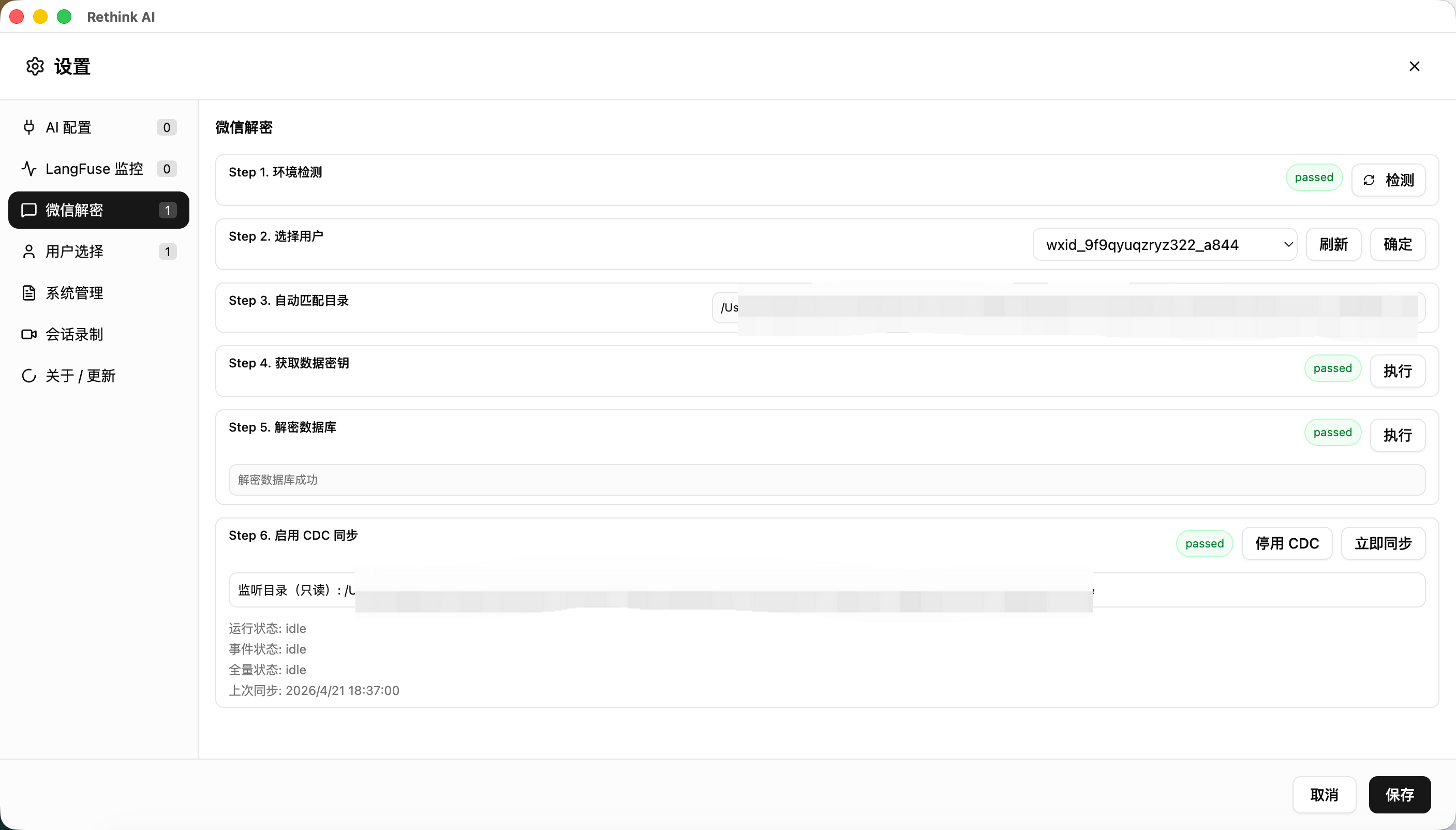 - 启用 CDC 同步(可选)— 开启后可实时增量同步新消息